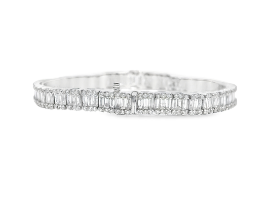 6.74CT Round Diamond & Emerald Cut Bracelet 18k White Gold