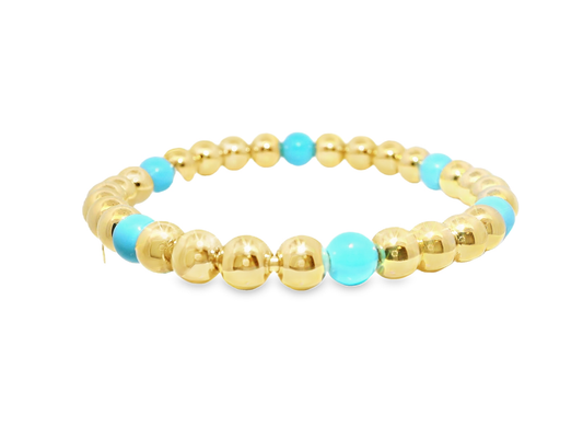 Plain Beaded with Turchese 14k Yellow Gold Bangle