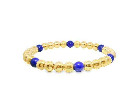 Plain Beaded with Lapis 14k Yellow Gold Bangle